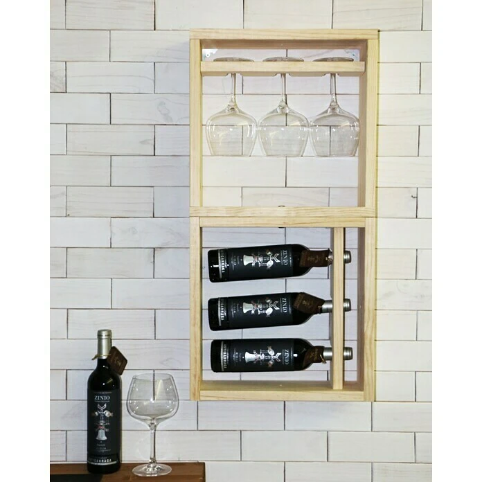 Das Flaschenregal von Astigarrara bietet verschiedenste Anwendungsmöglichkeiten. Das Regal ist aus natürlichem Kiefernholz gefertigt und mit dem PEFC-Siegel versehen. Die Oberfläche ist unbehandelt, wodurch das Regal seine natürliche Farbe beibehält. In den drei Halterungen können bequem Flaschen oder langstielige Gläser aufbewahrt werden.