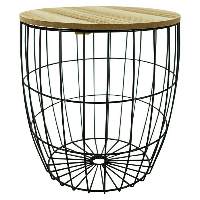 Der Beistelltisch ist in modernem schwarz und einer naturfarbenen Holzplatte ein echter Hingucker in jedem Wohnraum und bietet vielerlei Dekorationsmöglichkeiten. Der Metallkorb-Tisch fügt sich durch sein skandinavisch minimalistisches Design in nahezu jeden Einrichtungsstil hervorragend ein und sorgt für ein gemütliches Wohnambiente. Die Tischplatte setzt einen interessanten Kontrast zu dem aus Metall gearbeiteten Gestell – in Kombination lockert der Tisch den Raum auf und wird zu einem absoluten Eyecatcher.