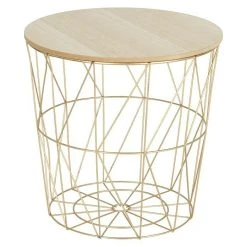 Der Beistelltisch besticht durch Funktionalität und modernem Design und lässt sich in viele verschiedene Einrichtungsstiele integrieren. Der Drahtkorb mit abnehmbarer, runder Tischplatte dient als Aufbewahrungsbox, Couchtisch oder Beistelltisch im Innenbereich und ist somit ein Multitalent. Die furnierte MDF Tischplatte setzt einen interessanten Kontrast zu dem aus Metall gearbeiteten Gestell – in Kombination lockert der Tisch den Raum auf und wird zu einem absoluten Eyecatcher.