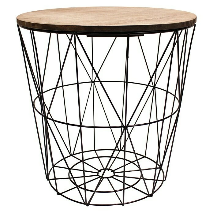 Der moderne Beistelltisch mit abnehmbarer Holzfaserplatte und dekorativen Metallkorb ist vielseitig verwendbar und lässt sich in viele verschiedene Einrichtungsstiele integrieren. Er kann sowohl als Couchtisch, Zeitungskorb aber auch als Beistelltisch in allen Wohnbereichen aufgestellt werden. Die furnierte MDF Tischplatte setzt einen interessanten Kontrast zu dem aus Metall gearbeiteten Gestell, welches zusätzlichen Stauraum bietet. Der Tisch lockert den Raum auf und ist ein absoluter Eyecatcher.