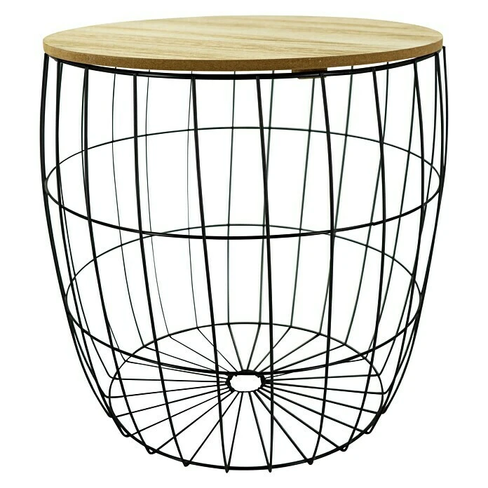 Der Beistelltisch ist in modernem schwarz und einer naturfarbenen Holzplatte ein echter Hingucker in jedem Wohnraum und bietet vielerlei Dekorationsmöglichkeiten. Der Metallkorb-Tisch fügt sich durch sein skandinavisch minimalistisches Design in nahezu jeden Einrichtungsstil hervorragend ein und sorgt für ein gemütliches Wohnambiente. Die Tischplatte setzt einen interessanten Kontrast zu dem aus Metall gearbeiteten Gestell – in Kombination lockert der Tisch den Raum auf und wird zu einem absoluten Eyecatcher.