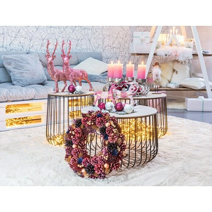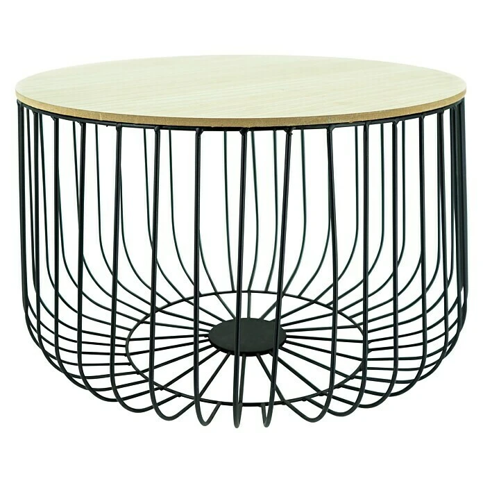Der Beistelltisch ist in modernem schwarz und einer naturfarbenen Holzplatte ein echter Hingucker in jedem Wohnraum und bietet vielerlei Dekorationsmöglichkeiten. Der Metallkorb-Tisch fügt sich durch sein skandinavisch minimalistisches Design in nahezu jeden Einrichtungsstil hervorragend ein und sorgt für ein gemütliches Wohnambiente. Die Tischplatte setzt einen interessanten Kontrast zu dem aus Metall gearbeiteten Gestell – in Kombination lockert der Tisch den Raum auf und wird zu einem absoluten Eyecatcher.
