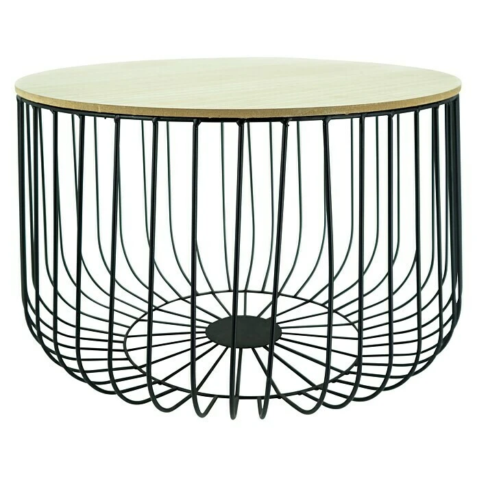 Der Beistelltisch ist in modernem schwarz und einer naturfarbenen Holzplatte ein echter Hingucker in jedem Wohnraum und bietet vielerlei Dekorationsmöglichkeiten. Der Metallkorb-Tisch fügt sich durch sein skandinavisch minimalistisches Design in nahezu jeden Einrichtungsstil hervorragend ein und sorgt für ein gemütliches Wohnambiente. Die Tischplatte setzt einen interessanten Kontrast zu dem aus Metall gearbeiteten Gestell – in Kombination lockert der Tisch den Raum auf und wird zu einem absoluten Eyecatcher.