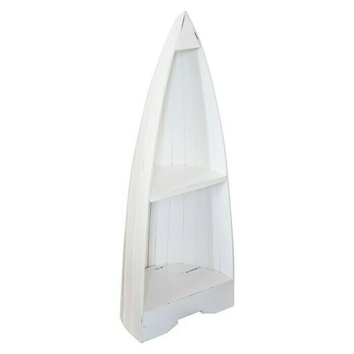 Das Standregal Mahagoni setzt stilvolle Akzente in jeder Umgebung. In Schiffsform designt schafft das Regal aus lackiertem Keruing Holz ein maritimes Flair. Auf seinen 2 Ablageböden bietet das Regal ausreichend Platz für Dekorationselemente, Bücher oder Fotos.