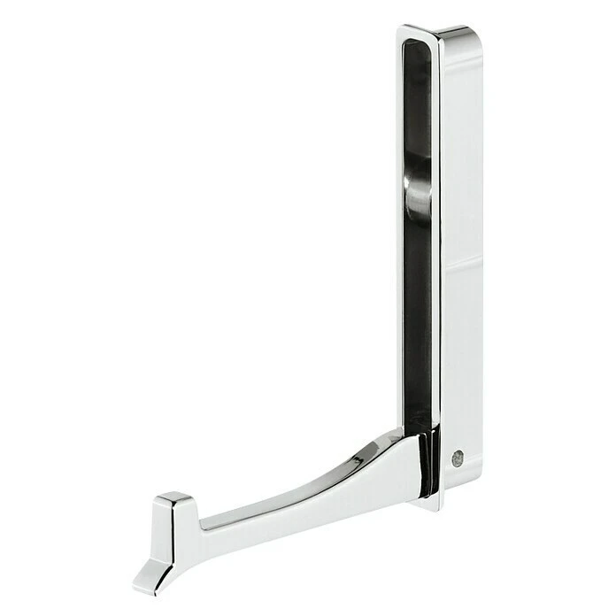Dieser klappbare Garderobenhaken ist aus beschichtetem Zinndruckguss gefertigt. Er lässt sich durch Kleben oder Schrauben einfach befestigen und bietet Platz für bis zu 2 Kleiderbügel. Im eingeklappten Zustand ist er nicht im Weg und eine Zuhaltefunktion mit Magnet verhindert ungewolltes Aufklappen.