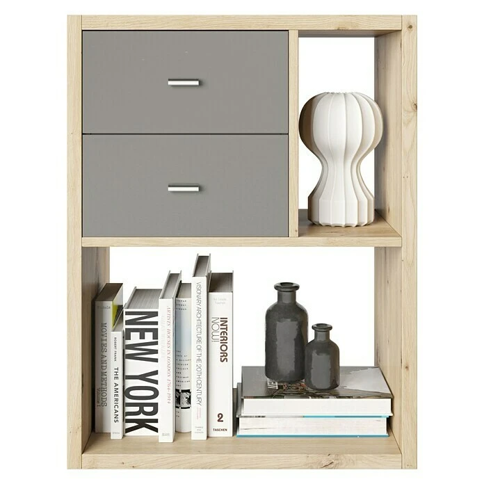Der Beistelltisch Fortuna von Phönix mit 3 Fächern und einem Schubladencontainer mit 2 Schubladen, bietet Stauraum für Zeitschriften, Bücher oder der Fernsehbedienung. Das Regal mit asymmetrischer Fachanordnung ist in einem zeitlos modernen Stil gehalten. Es ist mit weiteren Möbeln der Serie Fortuna kombinierbar und lässt sich auch als Couchtisch oder Nachttisch verwendet.