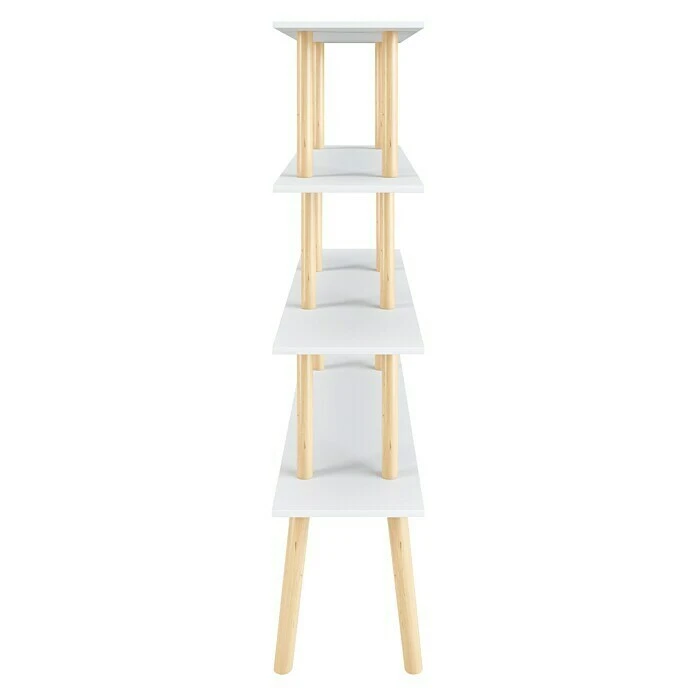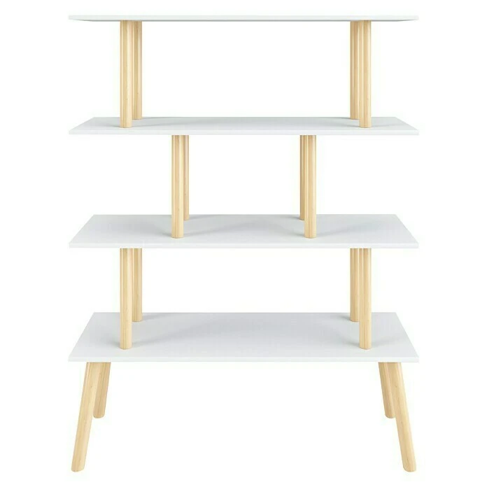Das Regal Scandi von Phönix ist in dem modernen Scandi-Design gehalten, das sich auch in der Farbkombination der weißen Böden und den braunen Stützen niederschlägt. Die Regalstützen sind asymmetrisch angeordnet und verleihen dem Regal dadurch eine aufgelockerte Struktur, die jeden Raum bereichert. Auf den vier geräumigen Regalböden lassen sich Bücher, Ordner oder Dekorationen großzügig verteilen und bewusst in Szene setzen.