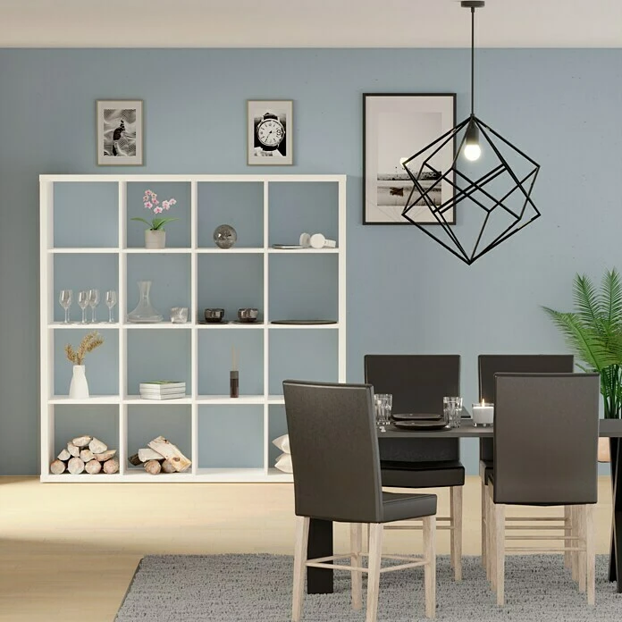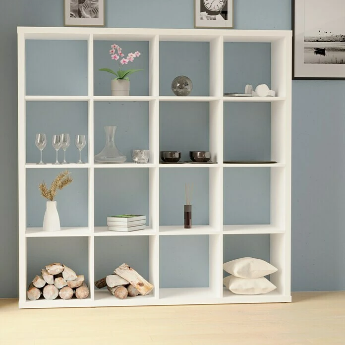 Das Regal bietet mit seinen 16 Fächern nützlichen Stauraum für Kleidung, Bücher oder andere Utensilien auf geringer Grundfläche. Das Regal kann sowohl für den allgemeinen Wohnbereich als auch für Büro-, Schlaf- und Kinderzimmer verwendet werden. Es überzeugt neben seinem modern schlichten Design auch durch seine hohe Stabilität und die einfache Montage. Das Regal kann durch seine offene Gestaltung ebenfalls rein dekorativ oder als Raumtrenner genutzt werden.