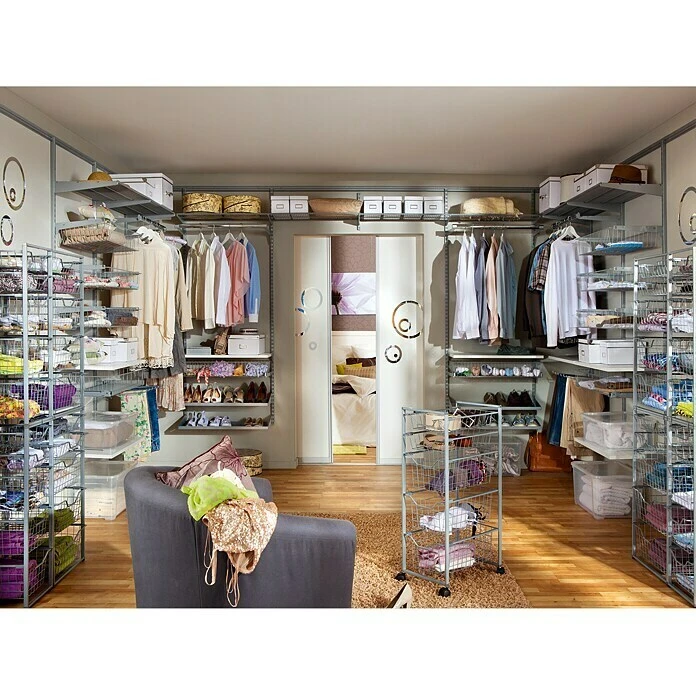 Das praktische Regalux Metall-Korb-System Clever ist ein äußerst flexibles Aufbewahrungssystem und bietet vielfältige Kombinationsmöglichkeiten mit unterschiedlichen Körben und Rahmen, die sich miteinander kombinieren lassen. Durch die silberne Pulverbeschichtung passt es sich sehr gut an die vorhandenen Einrichtungsstile an. Das Rollen-Set passt auf alle Clever Metallrahmen. Um Ihnen eine bessere Übersicht über die vielseitigen Kombinationsmöglichkeiten des Regalsystems Clever zu bieten, finden Sie unter ´Datenblätter´ auf dieser Seite ein Produktinformationsblatt.
