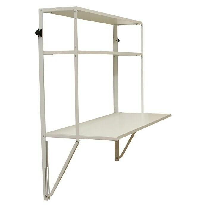 Das Simonflex Hängeregal von Simonrack ist eine praktische Lösung für kleine Räume. Es lässt sich zu einem Regal mit 3 Böden oder einem Schreib- oder Arbeitstisch ausklappen. Wenn das Regal nicht mehr gebraucht wird, kann man es leicht einklappen und so verschwinden lassen. Die beiden oberen Böden haben eine Traglast von 20kg und der große untere Boden 40kg.