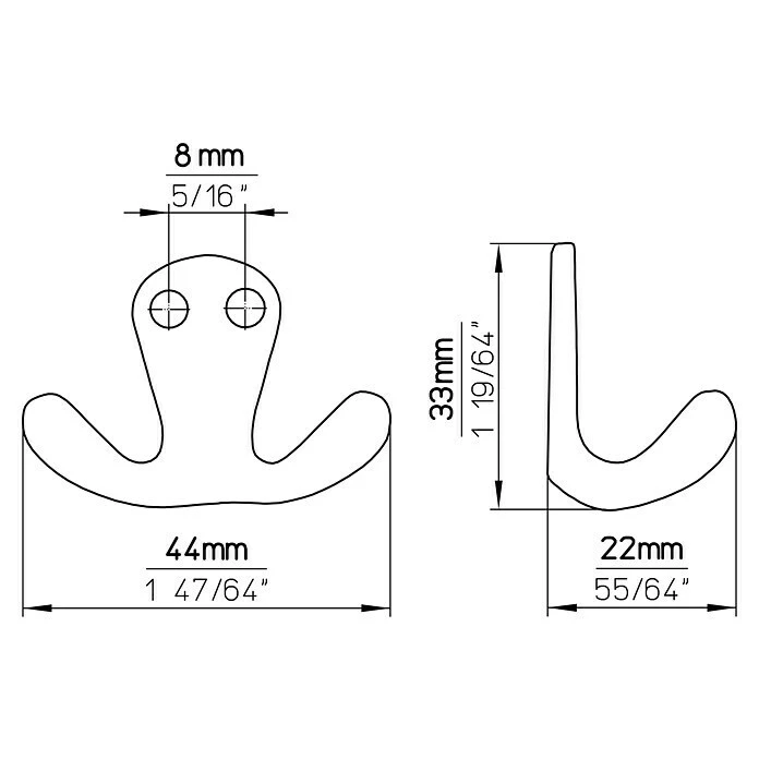 BAUHAUS Siro Garderobenhaken 1134PB13 L X B X H: 44 X 33 X 22 Mm, Anzahl Haken: 2 Stk.