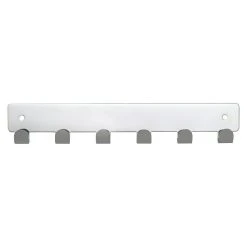 Die schlichte SIRO Hakenleiste 1603 aus Stahl mit 6 Aufhängemöglichkeiten und einer Gesamtlänge von 240 mm besticht durch eine hochwertige Verchromung und ist in jedem Raum einsetzbar. Hier finden beispielsweise Schals, kleine Handtücher oder auch Küchen-Accessoires Platz. Durch die im Lieferumfang enthaltenen Schrauben für 19 mm Frontstärke ist die Montage einfach zu erledigen.