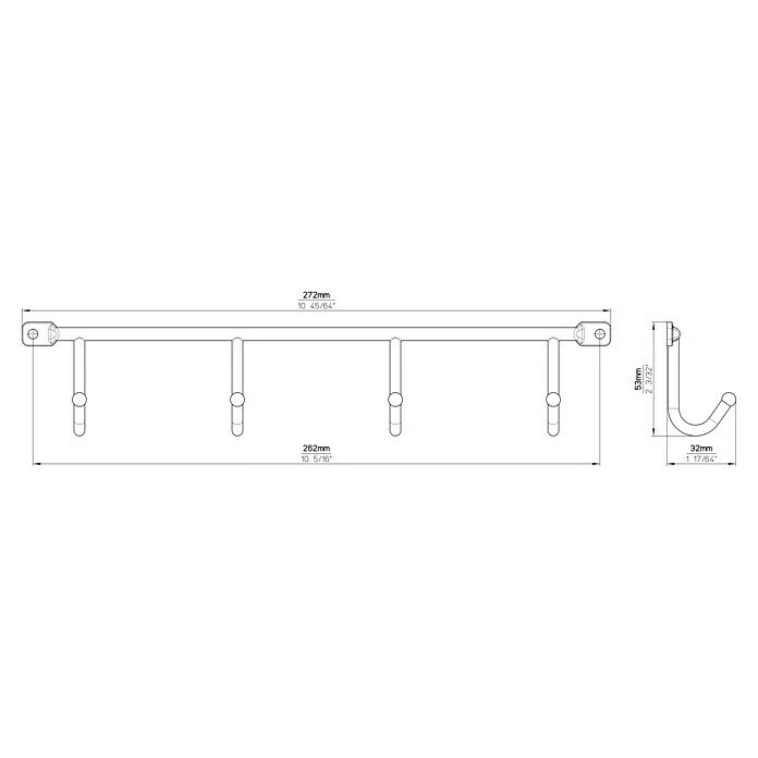 BAUHAUS Siro Garderobenleiste 2081-272ZN1 L X B X H: 272 X 53 X 32 Mm, Anzahl Haken: 4 Stk.