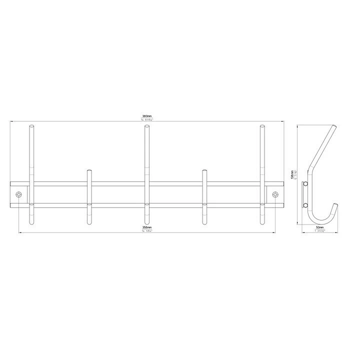 BAUHAUS Siro Garderobenleiste L X B X H: 380 X 150 X 50 Mm, Anzahl Haken: 5 Stk.
