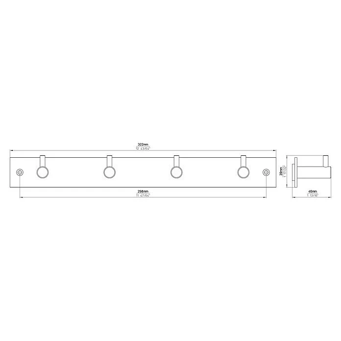 BAUHAUS Siro Hakenleiste 1890 L X H: 322 X 47 Mm, Anzahl Haken: 4 Stk.
