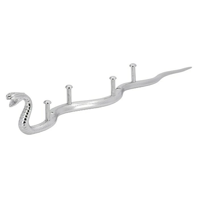Die exotische Hakenleiste 2088 im Schlangendesign von Siro ist aus Druckguss gefertigt. Mit 4 Aufhängemöglichkeiten und einer Länge von 369 mm besticht die Leiste durch die hochwertige Verchromung und ist ein Designelement und Blickfang in jedem Raum. Hängen Sie Ihre Kleidung mit dieser dekorativen Garderobenleiste stilvoll auf. Durch die im Lieferumfang enthaltenen Schrauben ist die Montage einfach zu erledigen.