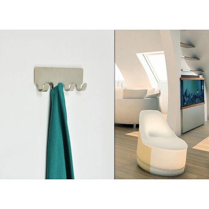 Die selbstklebende SIRO Hakenleiste 2178 ist aus Druckguss gefertigt. Mit 4 Aufhängemöglichkeiten und einer Gesamtlänge von 156 mm besticht sie durch eine elegante Oberfläche in Nickel matt und lässt sich in Ihrem Haushalt vielseitig einsetzen. Sie ist mit einer selbstklebenden Rückseite versehen und kann direkt an saubere und glatte Flächen angebracht werden. Sie hält leichte Dinge wie kleine Handtücher oder Küchen-Accessoires. Bei selbstklebenden Produkten empfiehlt es sich, die Klebefläche vorher mit Alkohol zu reinigen. Die Oberfläche muss absolut glatt sein! Nach dem Kleben soll das Produkt nicht sofort belastet werden, auch Klebefolien brauchen etwas Zeit, um sich gut mit dem Untergrund verbinden zu können.
