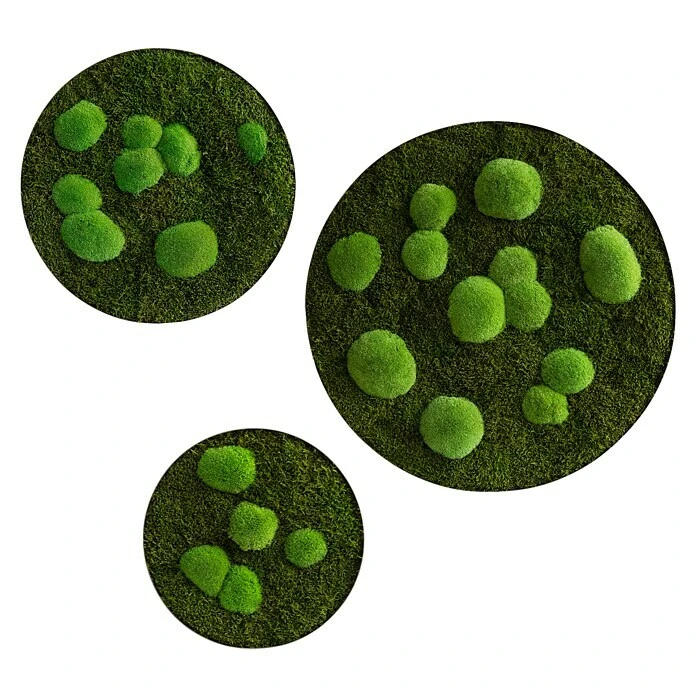 Das Wanddeko-Set Wald- und Kugelmoos Kreise von styleGREEN ist mit seiner einzigartigen Optik ein schöner Blickfang in jedem Wohnraum und wirkt beruhigend. Es besteht aus einem hochwertigen, Edelstahlrahmen, welcher mit echtem Wald- und Kugelmoos bepflanzt ist.