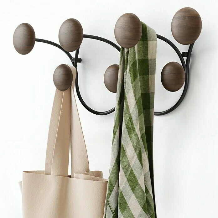 Die Wandgarderobe Dotsy der Marke Umbra mit 7 Haken ist eine funktionale und dekorative Bereicherung für jede Wand. Die Garderobenleiste lässt sich einfach anbringen und ziert jede Wand. Zusätzlich bietet sie viel Platz für Jacken, Taschen, Hüte und mehr. Jeder Haken trägt bis zu 2,3 kg. Dotsy wird an nur 2 Schrauben befestigt, was die Wandbeschädigung minimiert.