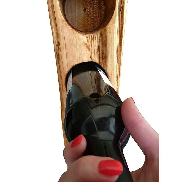 Dieser aus Massivholz in deutscher Handarbeit künstlich auf alt gestylte Weinständer, welcher sich nahtlos in jede Einrichtung einfügt, ist, aufgrund seiner ihm verliehenen Struktur, ein Unikat. Er eignet sich ideal als Geschenk für jeden Weinliebhaber oder für die perfekte Präsentation Ihres guten Weines. Die unterschiedlichen Narben, Risse und Einkerbungen verleihen dem Weinregal seine individuelle Note mit eigenem Charme und Charakter. Dieser Weinhalter weist eine Höhe von 158 cm und einen Durchmesser von 34 cm auf. Er bietet Platz für bis zu 11 Weinflaschen bei stabilem Stand auf einer runden, schwarz lackierten Stahlplatte; die Flaschenhalterungen sind für Flaschen bis zu 80 mm Durchmesser (handelsübliche 0,75 l Flaschen) vorgesehen und bieten zudem mit ca. 8 cm Bohrtiefe einen stabilen Halt.